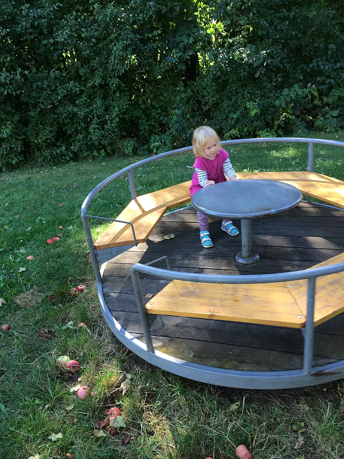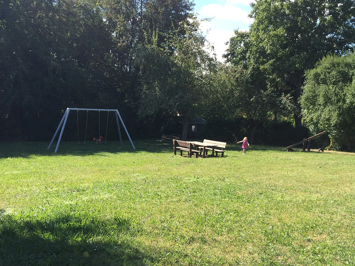 Der Spielplatz in Nennslingen ist mit einem Klettergerüst, einer Wippe, einer Schaukel, einem Schwingpferd und einem Karussell ausgestattet. Die umliegenden grünen Flächen laden zum rumtollen und verweilen ein.