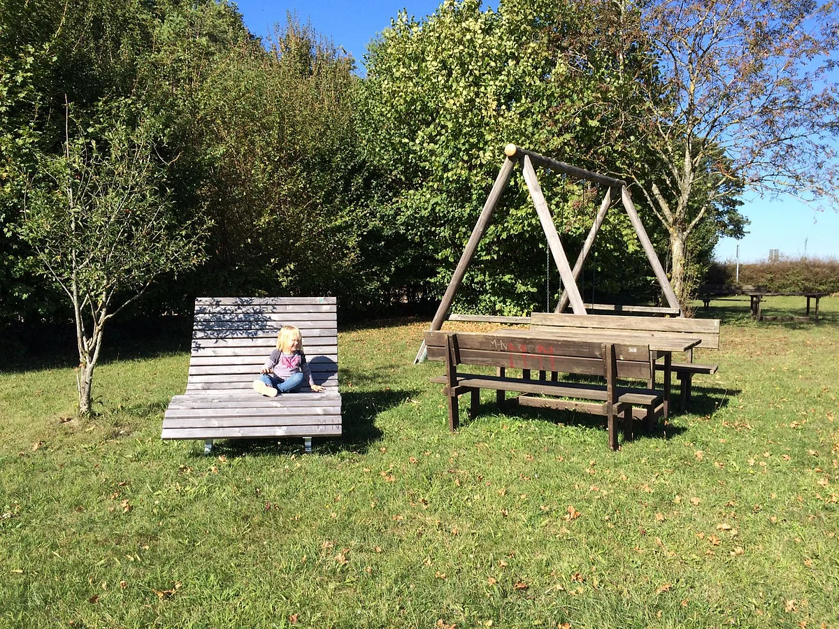 Der Spielplatz in Wengen ist mit einer Rutsche, einer Wippe und einer Schaukel ausgestattet- Zudem lädt der grüne Rasen zum Picknicken und Sonne genießen ein.